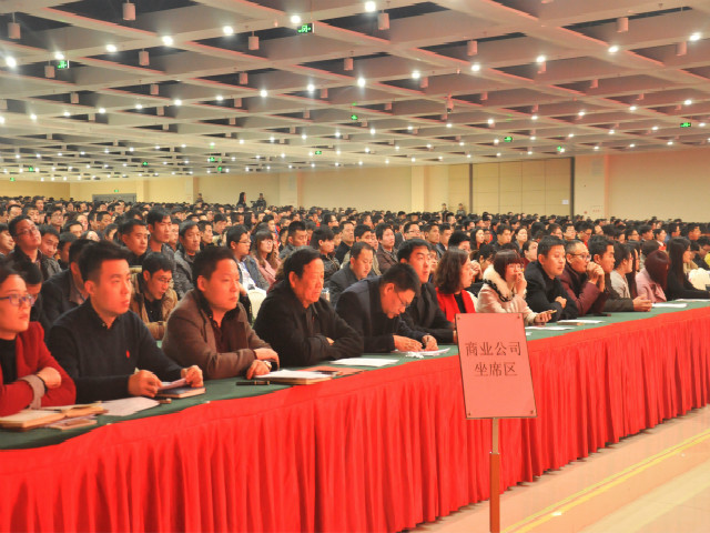 圖為羅欣集團(tuán)隆重召開(kāi)2015年度總結(jié)表彰暨2016年誓師大會(huì)的場(chǎng)景