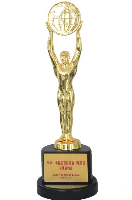 圖為“中國醫藥制造業十佳集團金牌采購商”獎杯