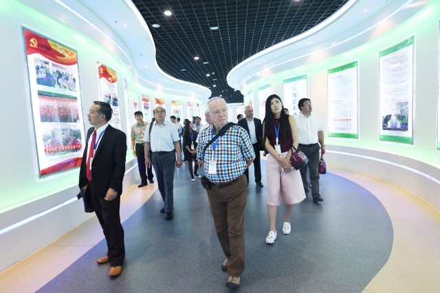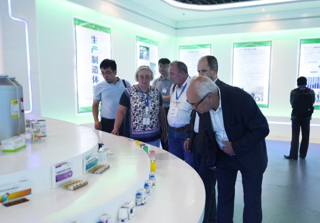 圖為山東傳統(tǒng)醫(yī)藥創(chuàng)新發(fā)展國際學術研討會與會人員參觀我公司展廳時的情景