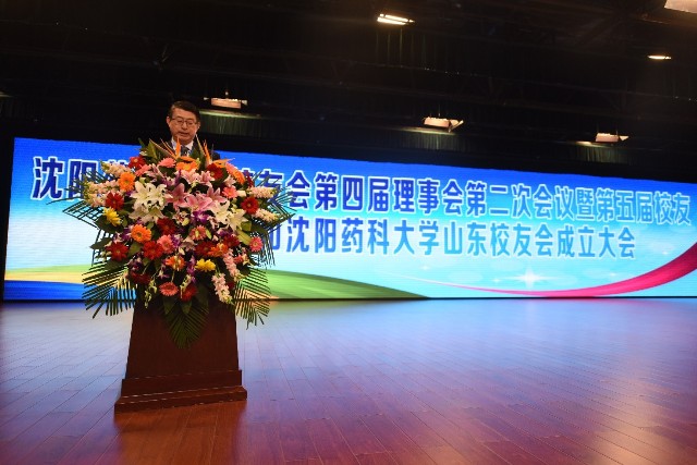 上圖為沈陽藥科大學校友會第四屆理事會第二次會議暨第五屆校友會高峰論壇和沈陽藥科大學山東校友會成立大會現場