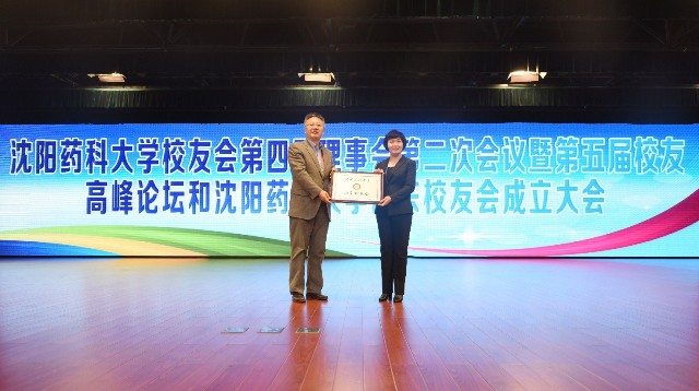 上圖為沈陽藥科大學山東校友會成立授牌儀式現場