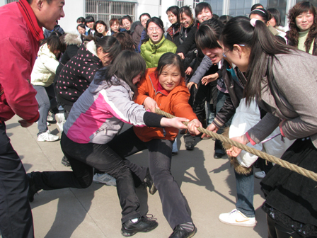 在一年一度的國際“三八”婦女節來臨之際,公司評選出“三八紅旗手”并頒發證書和獎品以資鼓勵。同時組織女職工進行了一場別開生面的拔河比賽和三人協作跑,現場氣氛熱烈,選手們個個神采奕奕擺出一副“我軍必勝”的姿態。比賽在一陣陣的“加油”吶喊聲中進入尾聲。“商業公司”衛冕拔河比賽與三人協作跑第一名,“固體制劑部”獲得拔河比賽第二名,“粉針部”獲得三人協作跑第二名。
