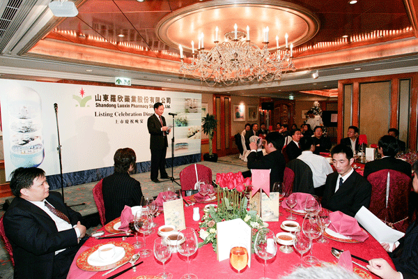 12月9日在香港香格里拉酒店舉行羅欣藥業股票上市慶功宴(2005-12-9)