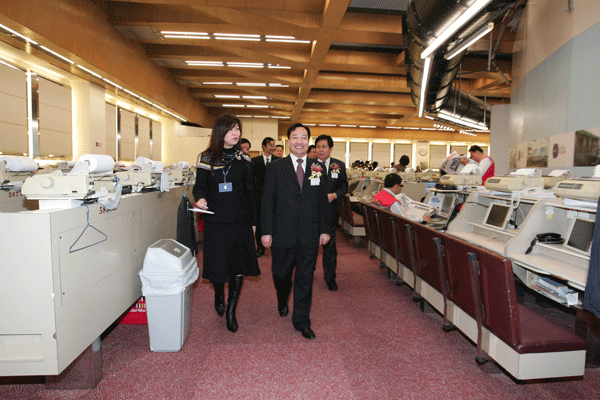 董事長劉保起及嘉賓們前往香港聯交所的交易大廳