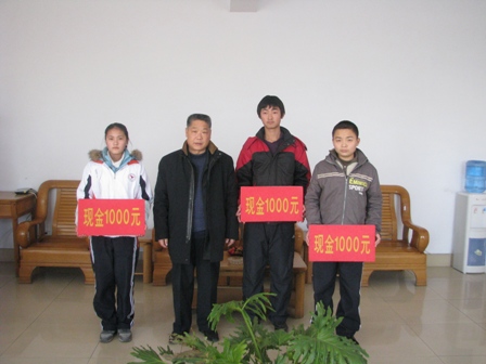 上圖為羅欣集團(tuán)工會主席張祥軍代表羅欣集團(tuán)向羅莊一中楊傳棟(左二)、陳麗泉(左一)、高亞南(左四)3名貧困生捐贈助學(xué)金時的情景