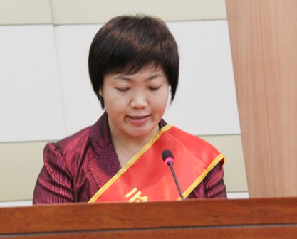 上圖為公司總經理李明華女士在“全市質量工作大會”上發言時的情景