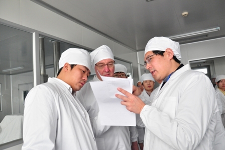 2012年2月7日,歐盟認證專家石泰牛博士一行蒞臨公司對新擴建廠區和廠房的歐盟認證改造工作進行為期三天的檢查指導工作。
