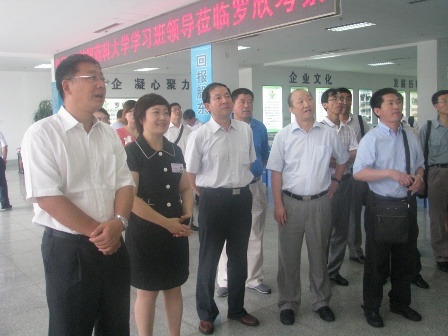 2011年7月30日,沈陽藥科大學處級干部學習班專家、教授在黨委書記、校長吳春福帶領下蒞臨羅欣考察。吳校長一行首先觀看了公司整體布局沙盤,詳細了解了集團的企業(yè)文化、發(fā)展歷程、產品開發(fā)、市場營銷、境外上市及未來發(fā)展規(guī)劃等情況,觀看了企業(yè)介紹短片,并在管理中心三樓會議室與公司管理層及科研人員進行了座談。