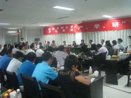 上圖為沈陽藥科大學與羅欣集團舉行“產、學、研”座談會時的情景