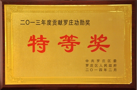 2014年2月10日,在區委、區政府組織召開的“全區2013年度工作總結表彰暨2014年經濟工作會議”中,區委、區政府對2013年度全區科學發展先進單位、先進個人進行了隆重表彰。我公司被授予2013年度“貢獻羅莊功勛獎特等獎”和“質量創新進步獎金獎”。