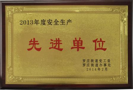 2014年2月22日,在羅莊街道黨工委、辦事處組織召開的“羅莊街道2013年度表彰大會(huì)暨2014年度經(jīng)濟(jì)會(huì)議”中,街道黨工委、街道辦事處對(duì)2013年度經(jīng)濟(jì)工作先進(jìn)集體和先進(jìn)個(gè)人進(jìn)行了表彰。我公司被授予2013年度“振興羅莊貢獻(xiàn)獎(jiǎng)金獎(jiǎng)”和“安全生產(chǎn)先進(jìn)單位”榮譽(yù)稱號(hào)。